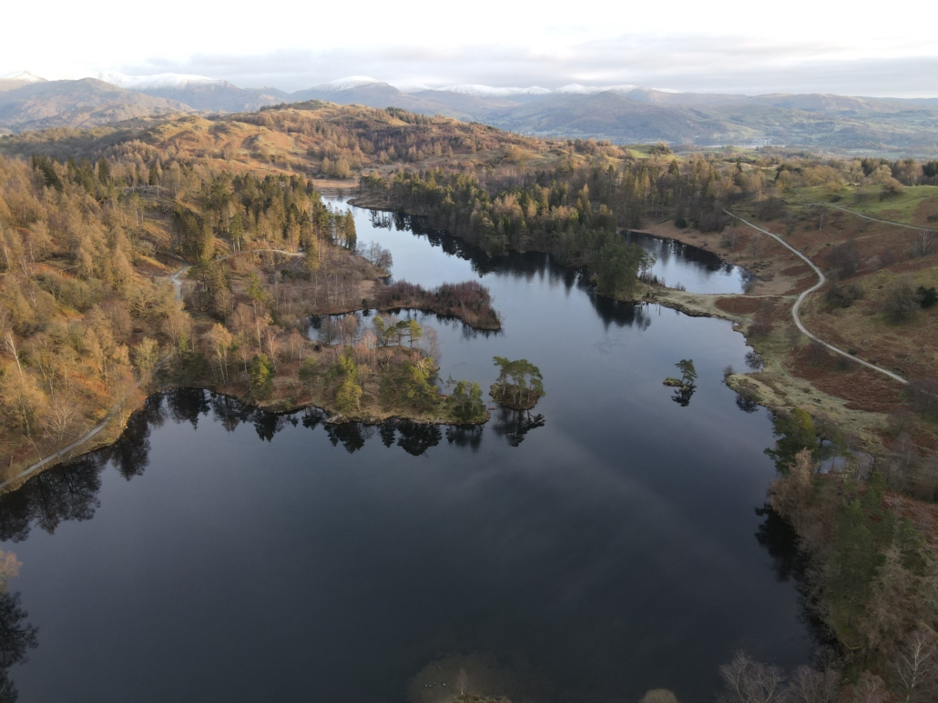 And our plan was perfect, because we arrived at Tarn Hows when there was only one other person there. Usually the place is packed, but we just about had this beautiful tarn all to ourselves. It was a chilly, frosty morning and the conditions were perfect for flying the drone. Take a look at this beautiful flyover here, and make sure 4k is selected if you can!